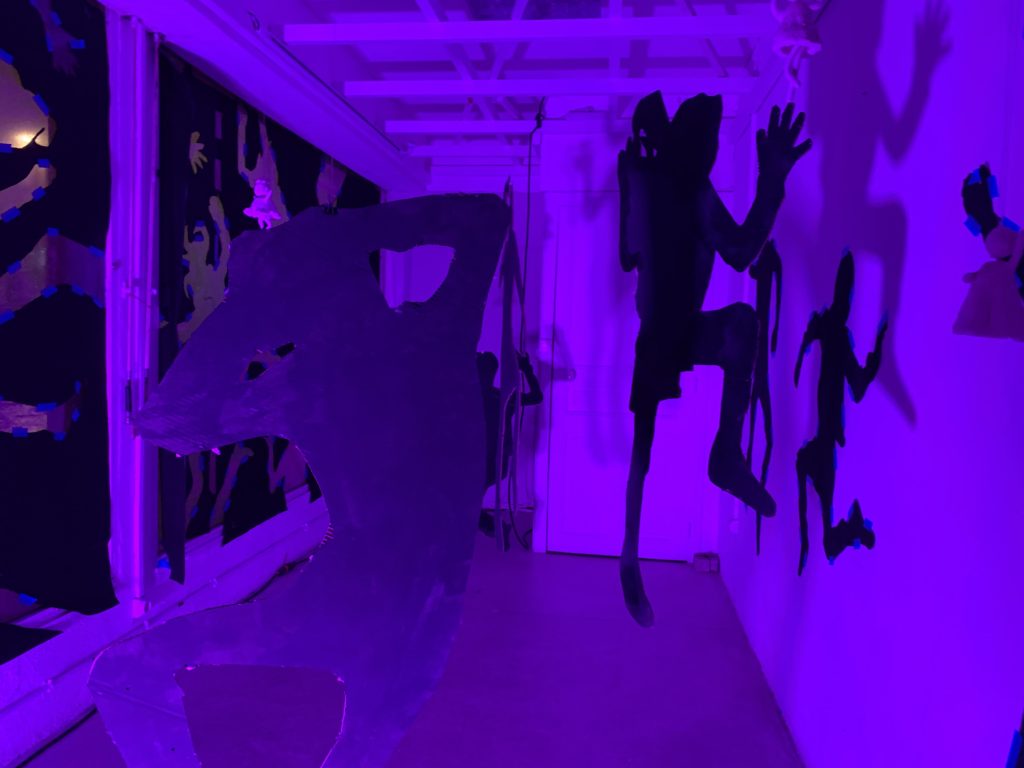 Les ateliers « Arts plastiques / Poterie » des enfants (6 – 10 ans) de la Cour des arts fêtent les 20 ans du festival Du Bleu en Hiver. Au rythme du jazz, les enfants ont été invités à mettre leurs corps en mouvement, tout en prenant en compte les notions d’espace et de temps. Tracer, découper, composer, modeler, les silhouettes créées tapissent tout l’espace en positif et en négatif, pour transformer la vitrine Le Point G.