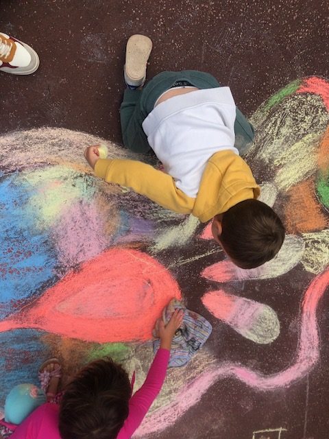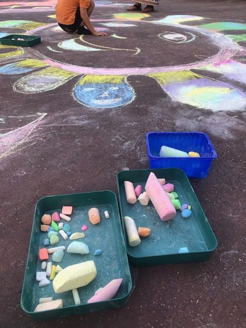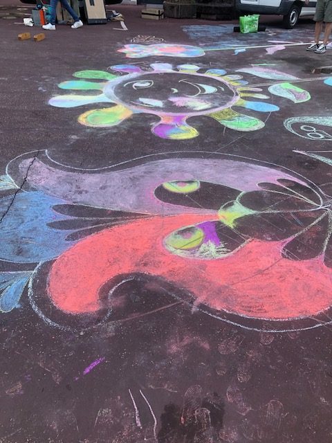 Dessin au sol libre, à la craie, dans le cadre du Pass Été 2025 (ville de Tulle)