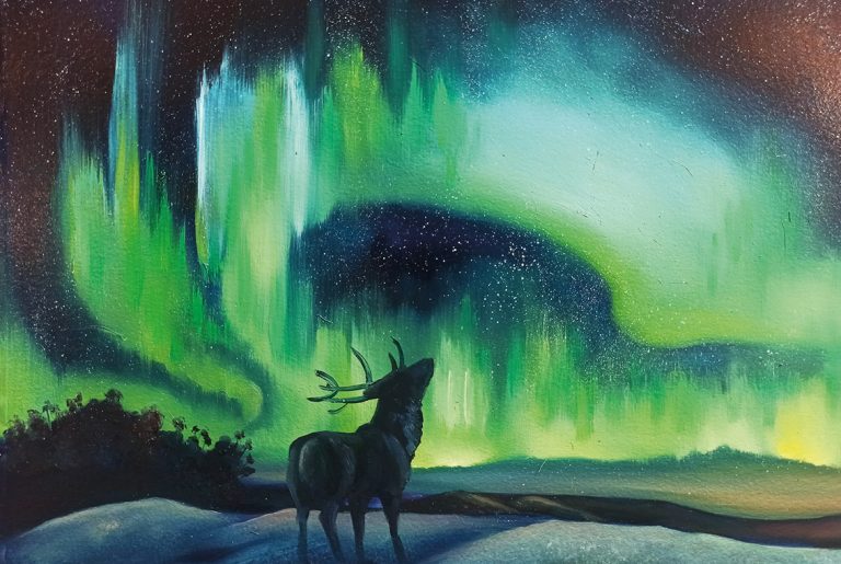 Peindre une aurore boréale pour découvrir les fondus et les couleurs éclatantes de la peinture à l’huile.